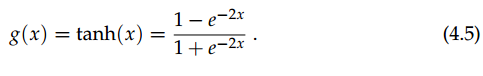 tanh 函数的值域为 [− 1, 1 ],它的表达式如下: