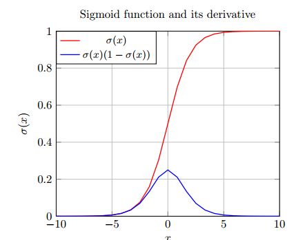 图 4.3:Sigmoid 函数和它的导数