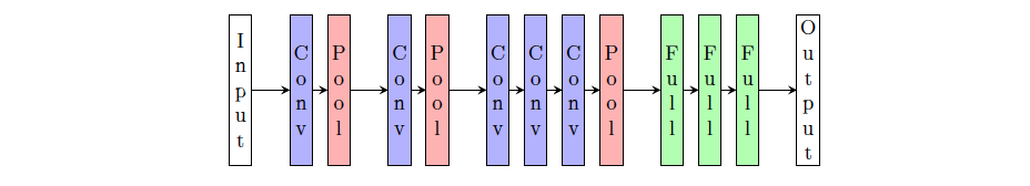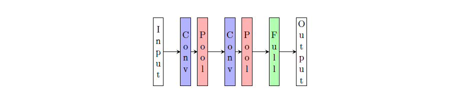 我们现在来了解过去 20 年文献中使用的标准 CNN 架构,我们将按时间顺序介绍这些架构(到 2015 年底)。我们将采用以下图示进行介绍。
