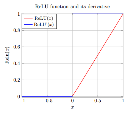 图 4.5:线性修正单元(ReLU)函数和它的导数
