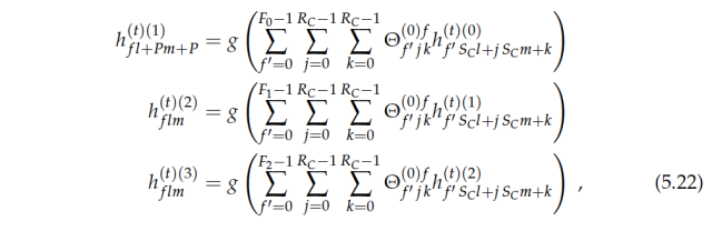其中 v∈[0,N−1]、f∈[0,(F_v+1)−1]、t∈[0,(T_mb)− 1]。e 代表包括或排除一个偏置项,因为实践中我们经常使用批量归一化,所以 e 可以设为 0。