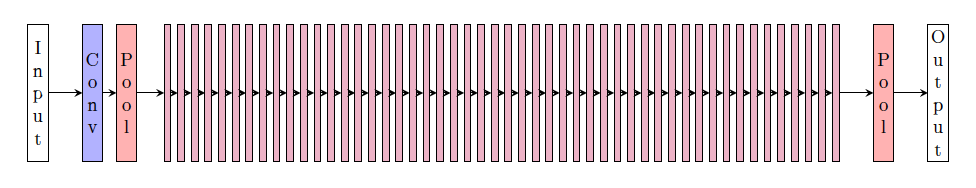 The VGG[4] 网络 (2014) 采用了一个简单的标准:只有步长为 2 的 2 x 2 padding 和步长为 1 的 3 x 3 卷积(带有一个大小为 1 的 padding),因此通过卷积操作保存了图像宽度与高度的大小。
