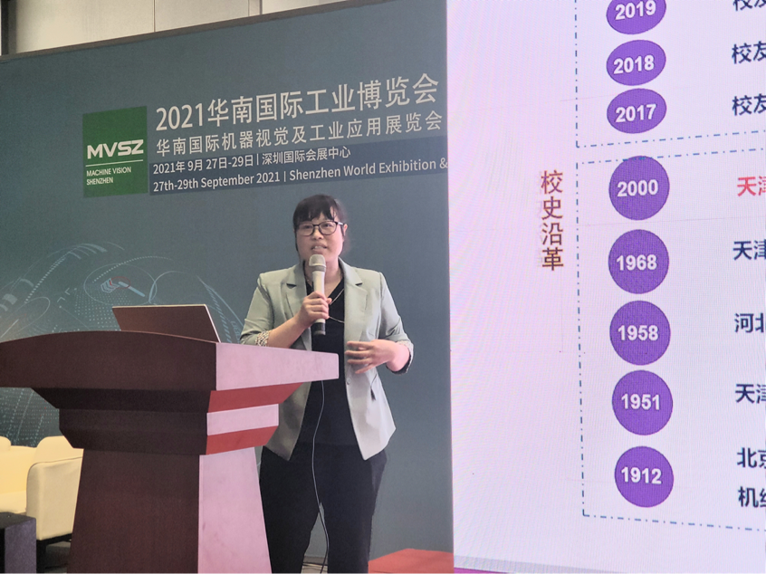 天津工业大学宋丽梅教授作了题为“高精度视觉检测与智能机器人”的报告。首先介绍了自主研发的两种不同原理的高精度视觉检测方法,两种方法均可以与机器人结合,完成智能分拣、智慧磨抛、智能焊接、以及智能制造等工作。随后结合团队已经在三维人体扫描、视觉引导机器人自动分拣等行业的应用,介绍了相关的原理和技术要点,推动了人工智能技术在工业、国防以及生产生活的应用。