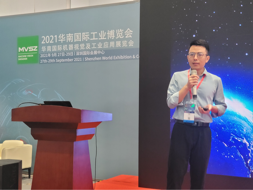 北京微视新纪元科技有限公司的销售总监欧阳哲作了题为“AI工具在工业场景的落地应用”的报告。从传统工业视觉检测行业痛点入手,介绍了5G 技术和AI对于行业痛点问题的解决方案,最后和大家分享了5G+AI工具在工业场景的落地案例,包括5G工业相机和5G工业处理盒。