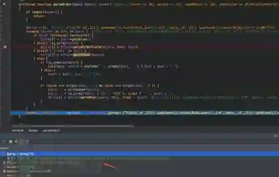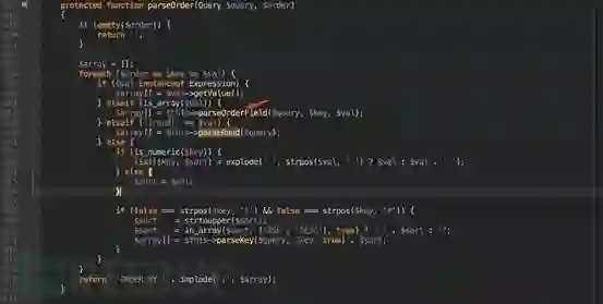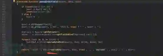 $val是个数组,进入parseOrderField()函数。F7下一步(我这里用的是phpstorm,F7是单步调试的意思)。