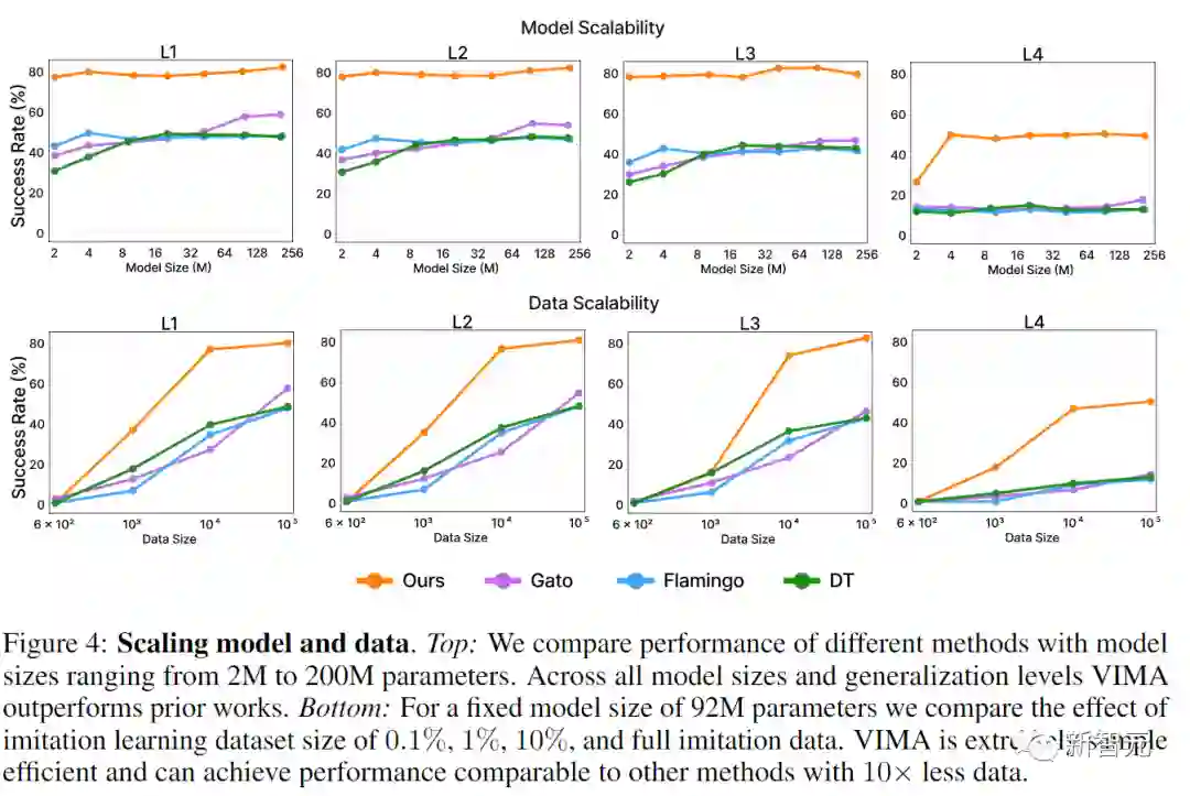 2、VIMA在模型容量和数据量上的缩放性(scaling properties);