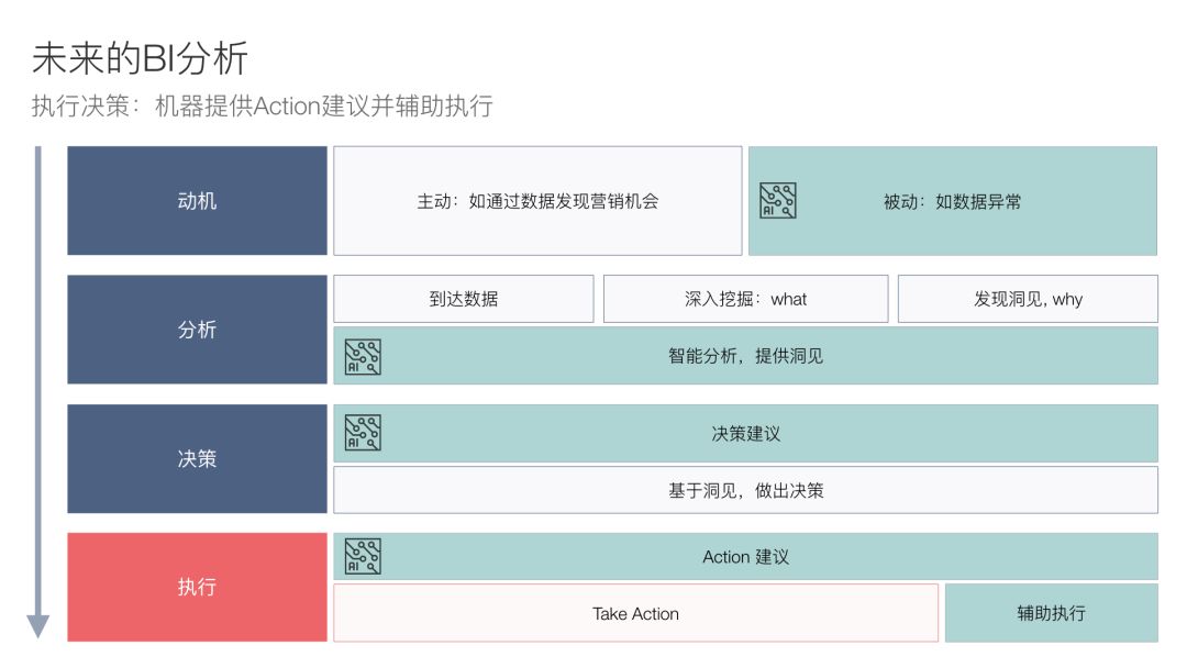 因此我们不难发现,在未来的BI分析中,AI能够帮助人们执行一些复杂的数据计算与探索的工作,而商业用户可以将精力回归到最重要的决策优化部分,这能够大大提高工作效率与精确度。