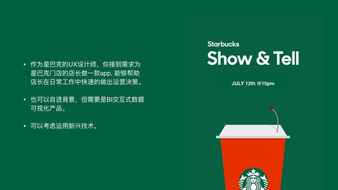 在所有的内容分享结束后我们组织大家进行工作坊练习,基于故事型设计思维为星巴克店长设计一款BI应用,可以考虑运用新兴技术。