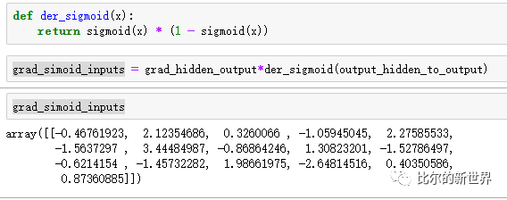 然后计算经过sigmoid前需要调整的梯度,这里需要求sigmoid函数的导数: