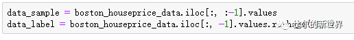 然后将待预测的数据标签与辅助训练的数据信息分开,最后一列为待预测房价数据标签:
