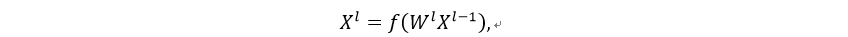 l 表示第l 层,W表示第l 层的参数矩阵,X表示第l -1 层的输入数据矩阵,f 表 示某类数学函数,也称激活函数。常用激活函数有ReLU, Sigmoid, TanH, Identity。