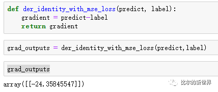 可以看出,结果为负值,与实际值(24.0)相差十万八千里。这是因为网络还没有通过后向传播调整连接网络层之间的参数值,通过不断地输入样本进行反复学习和更新网络参数,强化神经网络地预测能力。接下来,我们将继续通过代码学习神经网络后向传播。