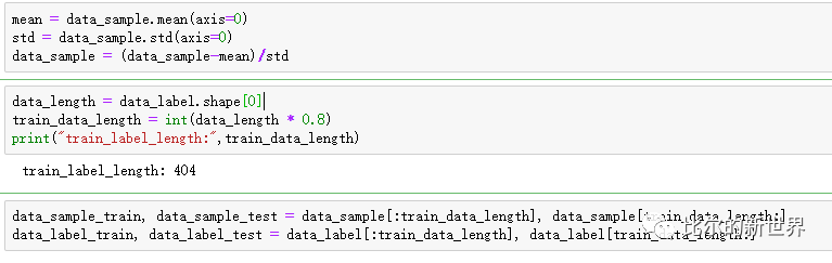 对数据进行减均值除方差的标准化处理,这样做有助于神经网络的收敛(学习),然后使用4/5的数据做训练数据,剩下的1/5数据做测试数据:
