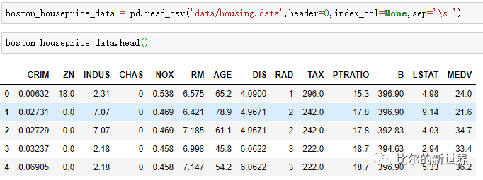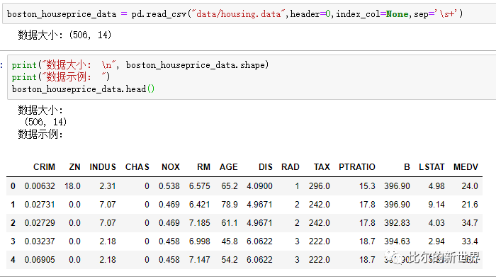 本文将预测波士顿郊区自住房屋价格的中位数。使用波士顿房价(BostonHousePrice)数据集,一部分数据用于训练模型,另一部分数据用于验证模型的效果。数据下载地址:https://archive.ics.uci.edu/ml/machine-learning-databases/housing/