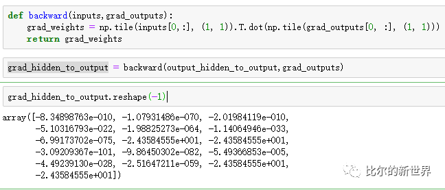 首先计算经过sigmoid后需要调整的梯度,这里直接将输出层需要调整的梯度点乘该全连接层的参数即可: