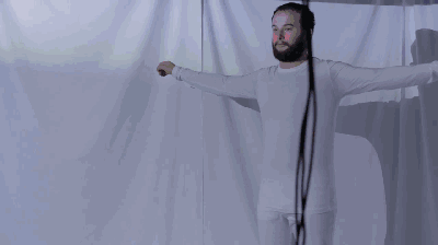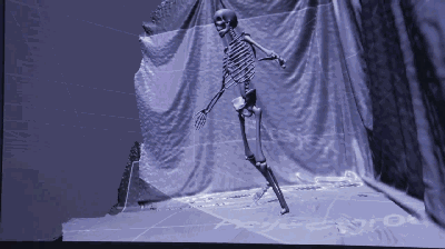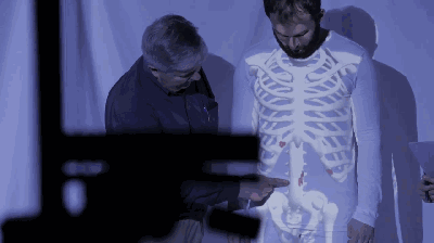 利用RoomAlive技术将人体骨架和肌肉模型投影到人身上,并能追踪人的运动。