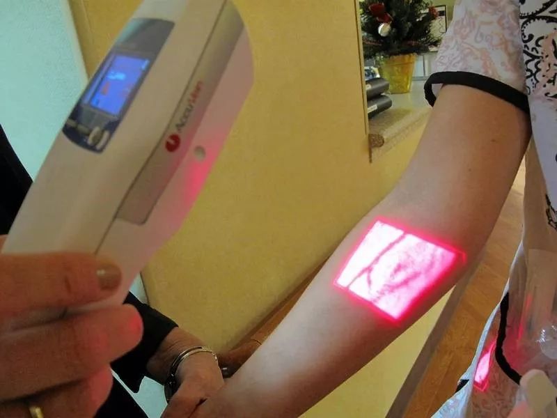 抽血化验和静脉注射几乎是每次看病的标配,然而数据显示,30%的患者第一次不能正确的找到静脉。利用AccuVein则可以解决这个问题。