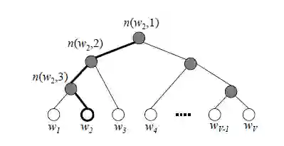 使用霍夫曼树有什么好处呢?首先,由于是二叉树,之前计算量为 ,现在变成了 。第二,由于使用霍夫曼树是高频的词靠近树根,这样高频词需要更少的时间会被找到,这符合我们的贪心优化思想。