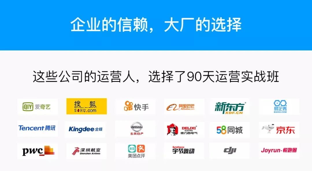 在此给大家推荐,腾讯课堂和起点课堂联合办学、专为运营人打造的《90天互联网运营实战班》直播课程。