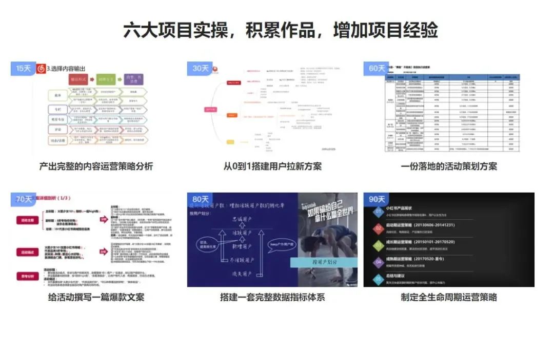6个项目实操确保让你切实掌握项目的操盘思路、方法、规划能力,提升项目能力,积累自己的方法论,高效、有节奏地输出高含金量的作品集。