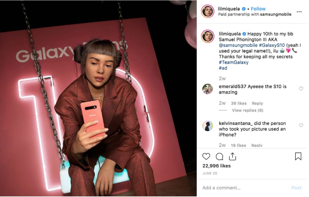 第一个CGI网红Lil Miquela已经在Instagram上积累了160万粉丝,和Calvin Klein、Tinder和三星都有过合作。另一个知名网红Bermuda和她的男朋友Blawko也分别在Instagram上积累了10余万粉丝。