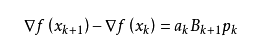 这里Bk是一个对称正定矩阵,于是我们取这个二次模型的最优解作为搜索方向,并且得到新的迭代点: