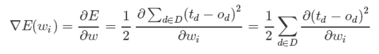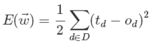 上面公式中D代表了所有的输入实例,或者说是样本,d代表了一个样本实例,od表示感知器的输出,td代表我们预想的输出。