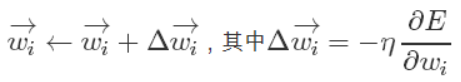 既然梯度确定了E最陡峭的上升的方向,那么梯度下降的训练法则是: