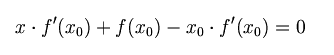 首先,选择一个接近函数 f (x)零点的 x0,计算相应的 f (x0) 和切线斜率f ' (x0)(这里f ' 表示函数 f 的导数)。然后我们计算穿过点(x0, f (x0)) 并且斜率为f '(x0)的直线和 x 轴的交点的x坐标,也就是求如下方程的解: