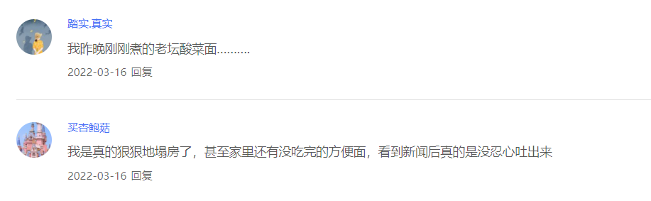 晚会中提到了许多乱象,都与自己的切身利益比较密切,犹如被自己的好兄弟背叛了。想了想昨天自己吃过的“老坛酸菜面”,再看看晚会上的“酸菜”,心里很不是滋味。