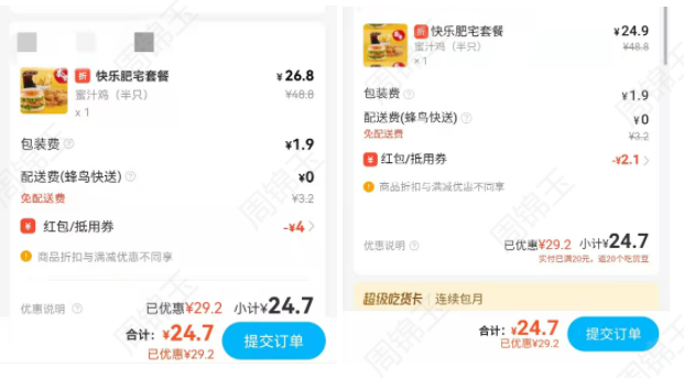 同样一款商品,外卖平台会根据用户使用的设备,比如安卓用户与苹果用户,两者呈现的价格是不一致的。同样地,当我们使用一款外卖软件,点外卖的频率比较多时,也会相对于使用频率较低的用户价格要高。