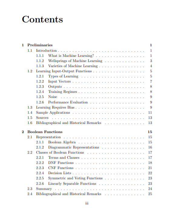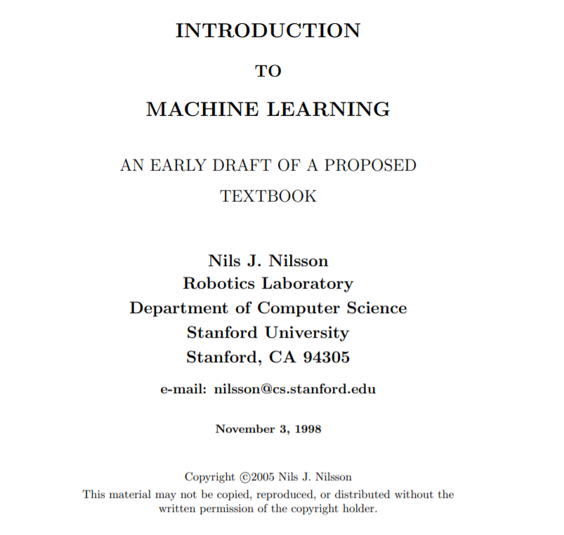 这本书调研了大约20世纪90年代末机器学习的许多重要课题。我的意图是在理论和实践之间寻求一个中间桥梁带。笔记集中在机器学习的重要思想上——它既不是一本实践手册,也不是一个理论证明的概要。我的目标是为读者提供充分的准备,使一些关于机器学习的广泛文献易于理解。草稿只有200多页(包括扉页)。