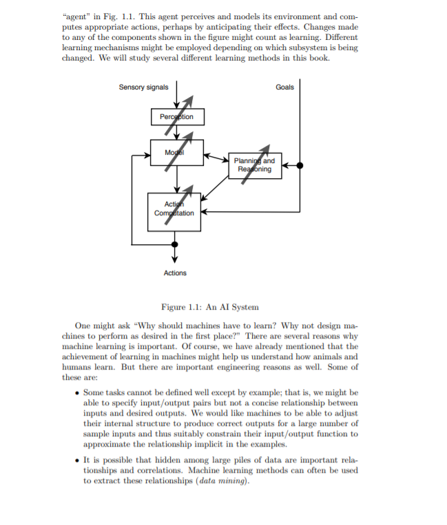 学习,就像智力一样,涵盖了如此广泛的过程,很难精确定义。词典的定义包括这样的短语:“通过学习、指导或经验获得知识、或理解、或技能”和“通过经验改变行为倾向”。动物学家和心理学家研究动物和人类的学习。在这本书中,我们关注的是机器学习。动物和机器学习之间有一些相似之处。当然,机器学习的许多技术都来自心理学家的努力,他们通过计算模型使动物和人类学习的理论更加精确。机器学习研究人员正在探索的概念和技术似乎也可能阐明生物学习的某些方面。
