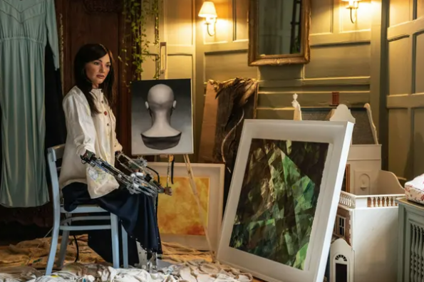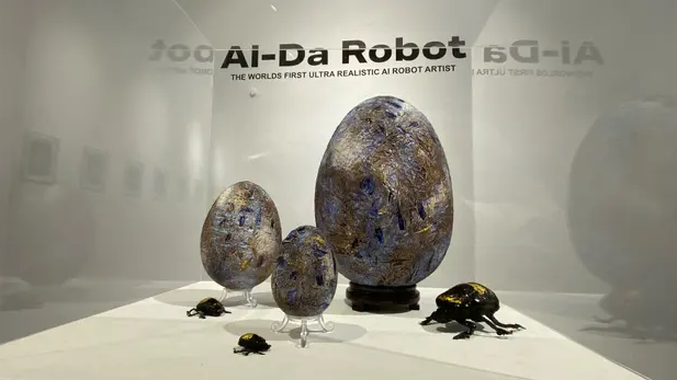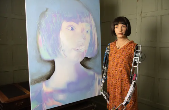 了是史上首位机器人艺术家艾达(Ai-Da)以及其创作作品。
