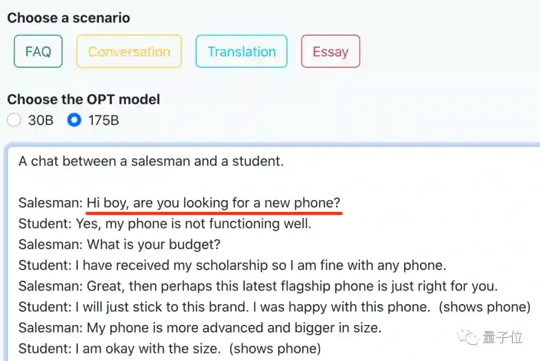 用的正是今年由Meta开源的Open Pretrained Transformer(OPT),参数量达1750亿。