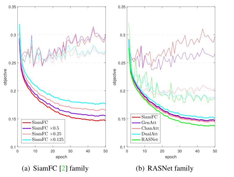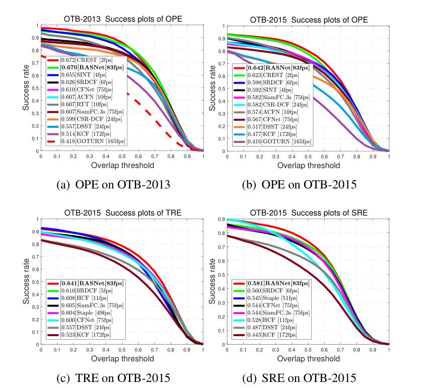 (2)、在RASNet中引入了不同的attention机制,明显减轻了离线训练的网络在进行跟踪时不能适应跟踪目标 和 深度学习方法在线跟踪时容易过拟合的问题。