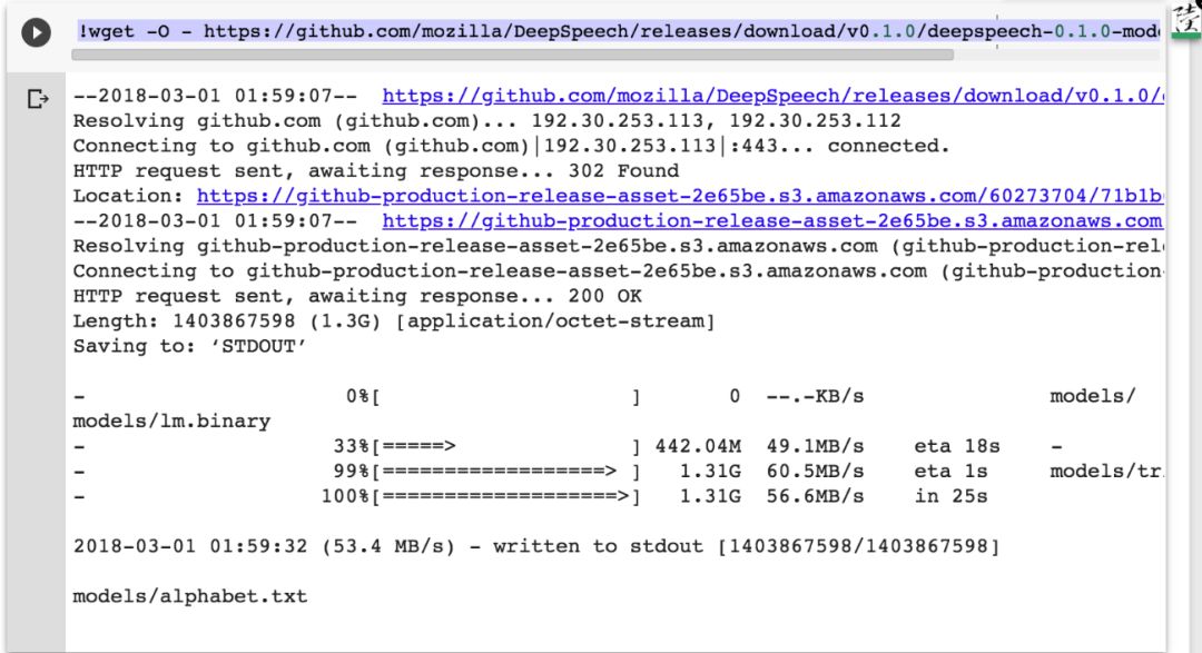 !wget -O - https://github.com/mozilla/DeepSpeech/releases/download/v0.1.0/deepspeech-0.1.0-models.tar.gz | tar xvfz -