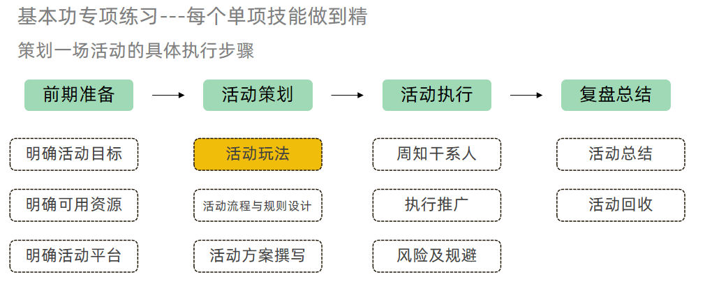 例如:如果你是做活动运营,那么就思考每个具体执行步骤上:我还有什么不足的地方?
