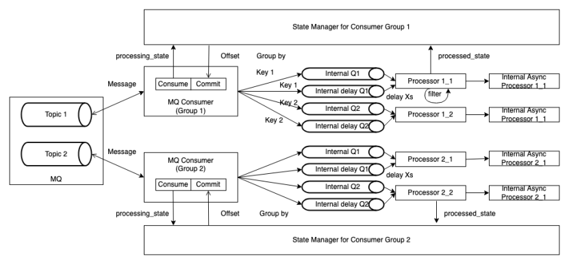 整个框架主要由 MQ Consumer, Message Processor 和 State Manager 组成。