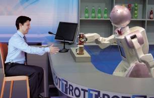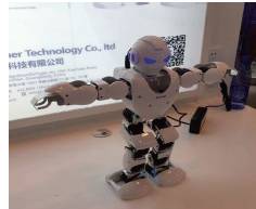随着机器人技术的发展,智能机器人已经逐渐成为了人们日常生活中的重要组成部分,而凌空手势不仅提供指令类信息,而且能够提供含有空间信息的操控命令,在与智能机器人的交互中具有显著的必要性[40]。例如,常见的凌空手势“指”,不仅可以为机器人提供移动位置的指令,而且能够明确指出机器人位置移动的方向,如图18所示。目前,比较成熟的产品主要有:深圳优必选科技有限公司(UBTECH)推出的仿“人脑”智能机器人Alpha,支持用户通过凌空手势操控Alpha完成股市、天气、航班等信息查询和拨打电话等功能,如图19所示;ZeroUI公司推出了面向儿童的智能机器人Ziro,通过“挥手”手势便可指挥其进行旋转,如图20所示。