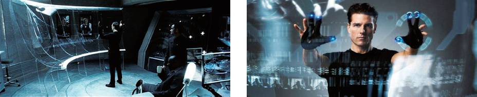 图1 《钢铁侠》、《少数派报告》中凌空手势操控场景