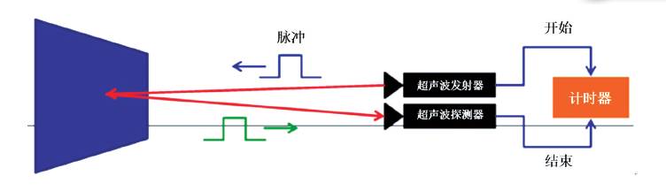 除了利用多普勒效应,超声波测距技术同样被应用于凌空手势识别中。超声波测距技术主要利用信号在两个异步收发装置之间往返的飞行时间测量节点间的距离,如图7所示。由超声波发射器发射脉冲信号,通过探测发射脉冲和接收脉冲之间的相位差感知手势的轨迹,从而实现手势识别。