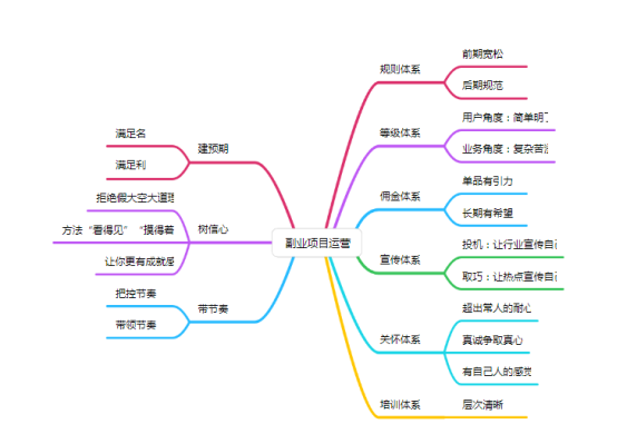 由此可见,看似神龙见首不见尾的副业项目最主要的是抓住普罗大众希望快速致富、求名求利的心理,在项目的设计之初制定合理的方案;其次是解决普罗大众懒惰和缺乏规划的本性,通过带节奏的策略方式,利用符合生理的合理节奏带领副业团队进行长久的推广;第三,普通大众通常缺乏成就和成就感,项目设计人员或者团队带领人员,要学会设计一些小的动作来建立整个团队的信心和士气。