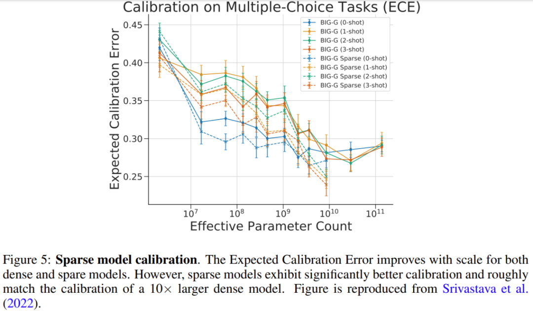 硬件 现代稀疏专家模型已与用于训练最大神经网络的分布式系统共同设计。 大型神经网络(Brown et al., 2020; Rae et al., 2021; Chowdhery et al., 2022)的研究表明神经网络已经远远超过单个加速器的内存容量,因此权重,激活函数,优化器变量等张量需要使用各种并行策略分片。 三种常见的并行方法包括:数据并行(复制模型权重,对数据进行分片)、张量模型并行(数据和权重张量跨设备分片)和 pipeline 并行(整个层或层组被跨设备分片),混合专家模型通常能够适应这些并行方案。 在MoE 模型的训练和部署方面,Jaszczur et al. (2021)将 Transformer 模型的所有层进行稀疏化,从而实现了 37 倍的推理加速;Kossmann et al. (2022)通过 RECOMPILE 库解决了静态专家批处理大小的约束问题。 除了数据并行、模型并行和专家并行外,Rajbhandari et al.(2022) 提出 DeepSpeed-MoE 库,以支持 ZeRO partitioning 和 ZeRO-Offload,实现了 10 倍推理提升和 SOTA 翻译性能,从而增加了模型在生产服务中的实用性。 稀疏专家模型的扩展特性 密集神经语言模型的交叉熵损失表现为一种关于模型参数计数、数据量和计算预算(Kaplan et al., 2020)的幂律。幂律系数后来在 Hoffmann et al. (2022)中得到纠正,这表明计算最优模型需要数据和参数扩展更紧密的平衡。相比之下,稀疏专家模型的早期研究以启发式方式扩展获得了强有力的实证结果,但没有仔细描述扩展定律。此外,一些工作强调了上游(例如预训练)和下游(例如微调)行为之间的差异(Fedus et al., 2021; Artetxe et al., 2021),进一步复杂化了对稀疏专家模型的理解。 上游扩展 稀疏专家模型在大型数据集上训练时表现出色。自然语言处理中的常见模式是先执行上游训练(例如预训练),然后对特定感兴趣的数据分布进行下游训练(例如微调)。在上游阶段,稀疏专家模型一直比密集对应模型产生更高的收益。Shazeer et al. (2017) 在 10 亿字语言建模基准(Chelba et al., 2013)上提出了关于模型参数和计算预算的扩展曲线,与密集版本相比取得了显著收益。Lepikhin et al. (2020)提出了模型扩展函数的改进版本,并在其最大的 600B 参数稀疏模型上获得了 13.5 的 BLEU 分数增益。Switch Transformer (Fedus et al., 2021) 在 T5 模型上使用相同的计算资源测量到 4-7 倍的 wall-time 加速。该工作还研究了作为参数计数函数的交叉熵损失扩展,但观察到超过 256 位专家时,收益减少了。 下游扩展 然而,可靠的上游扩展并没有立即在下游任务上产生一致的收益。在一项强调迁移挑战的工作中,Fedus et al. (2021)使用低计算、高参数编码器 - 解码器 Transformer(1.6T 参数,每个稀疏层有 2048 个专家)观察到 4 倍的预训练改进,但它在 SuperGLUE 等密集型推理任务上的微调效果不佳。这一发现暗示了进一步的必要研究以及计算和参数之间可能需要的平衡。 Du et al.(2021) 展示了稀疏 GLaM 模型的扩展,范围从 1B-64B FLOP,每个稀疏层使用 64 位专家。GLaM 取得了 SOTA 结果,在 zero-shot 和 one-shot 性能方面优于 175B 参数的 GPT-3 模型(Brown et al., 2020),同时在推理时每个token使用的 FLOP 减少了 49%,功耗降低了 65% (如下图4(左)所示)。下图 4 (右) 是稀疏模型在少样本推理上表现良好的另一个例子。