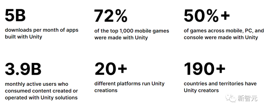 根据Unity官网提供的数据,Unity在全球190多个国家和地区拥有超过39亿活跃用户,在手机游戏市场的份额占比超过70%。