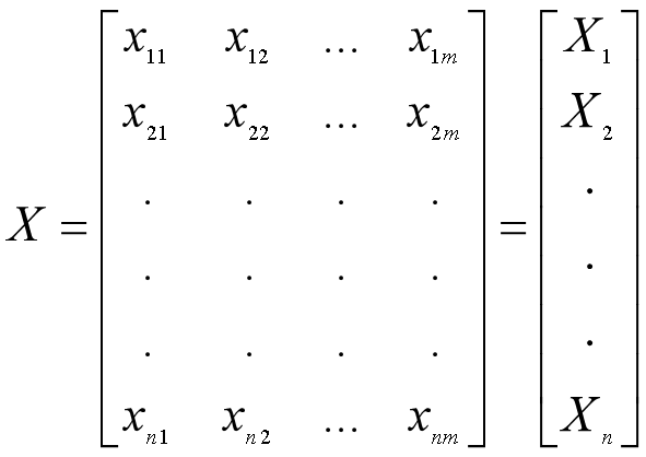 假定我们有m个观测值,每个观测值有n个特征(变量),那么将其排成n行m列的矩阵,并且每一行都减去该行的均值,得到矩阵X(减去均值是为了下面方便求方差和协方差)。