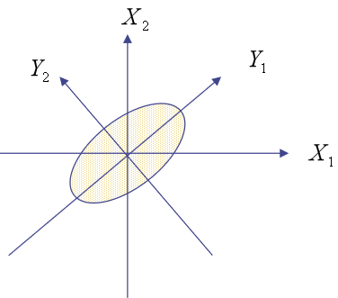 我们先看n=2时,主成分为Y1和Y2,原变量为X1和X2。