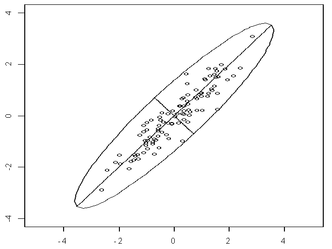 如果长轴变量解释了数据集的大部分变化,那么就可以用长轴变量来代表原来的两个变量,从而把二维数据降至一维。