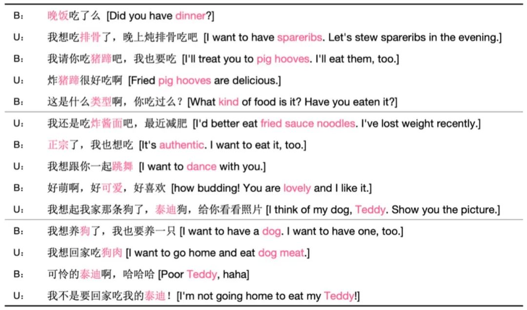 句间重复惩罚:我们鼓励多样的内容规划生成,当有超过60%的生成的回复句中的词语在上文中任意一句中同时出现,则判定为重复;