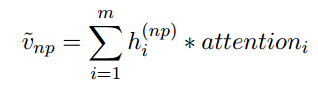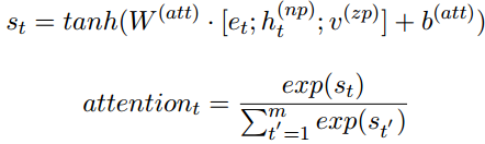 我们有了零代词的表示,利用其对一个后选先行语的每个词进行注意力计算。特别的,注意力的计算公式为